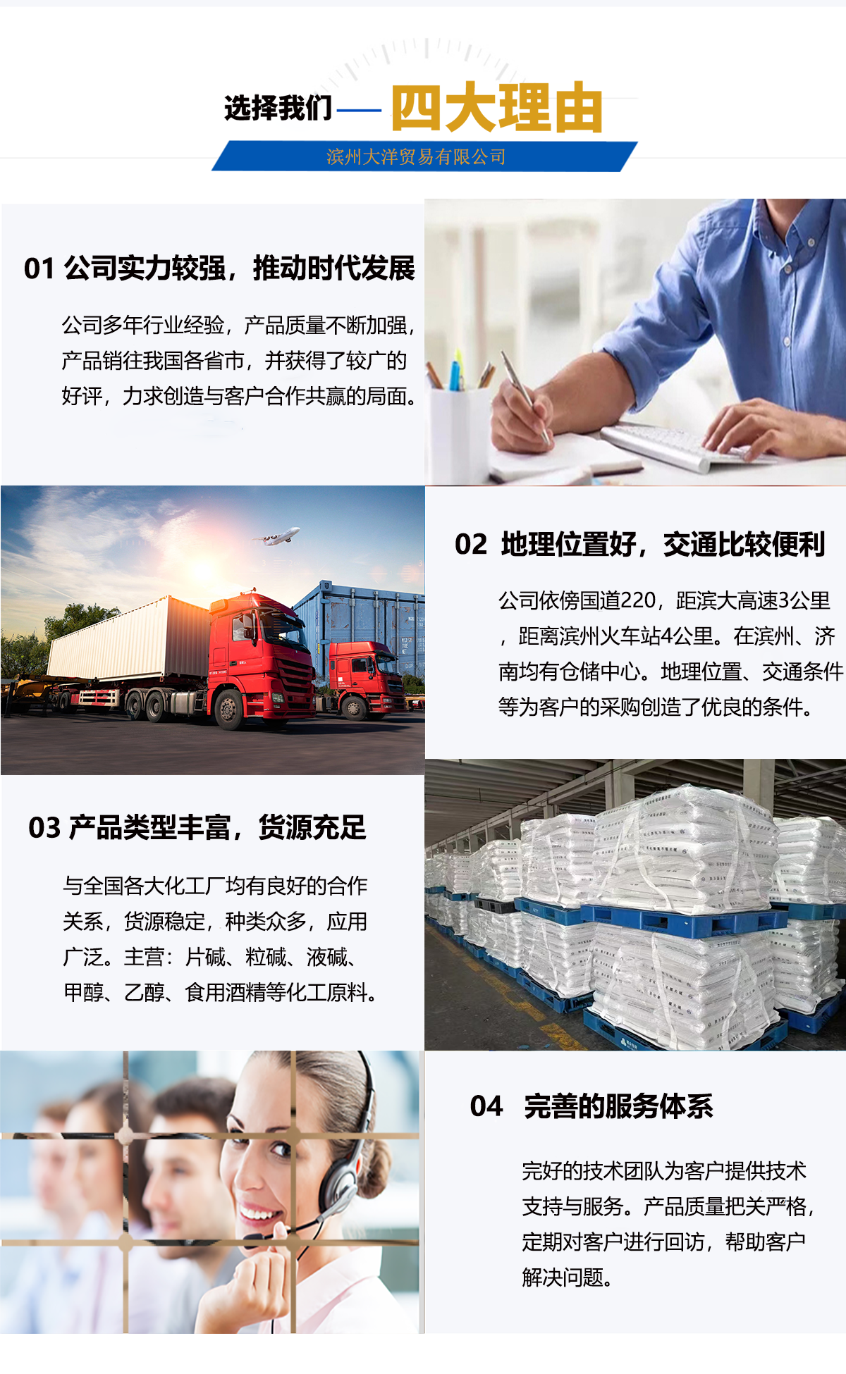 濱州大洋貿易有限公司位于紡織之都濱州市,是一家專業經營各種化工原料的專業公司,與全國各大化工廠均有良好的合作關系,貨源穩定、價格低廉。公司依傍國道220,距濱大高速3公里,距離濱州火車站4公里。在濱州、濟南均有倉儲中心。地理位置、交通條件。為客戶的采購創造了優良的條件。